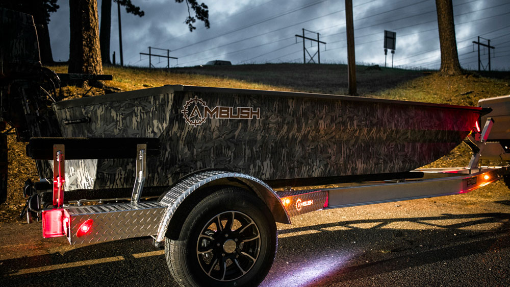Every Ambush Boat is built rugged to last a lifetime. Hand welded with true fit and finish with attention to detail using only top quality materials, from the aluminum, to the custom paint.